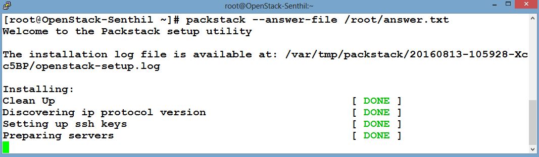 13. Install the packstack using the answer key file.